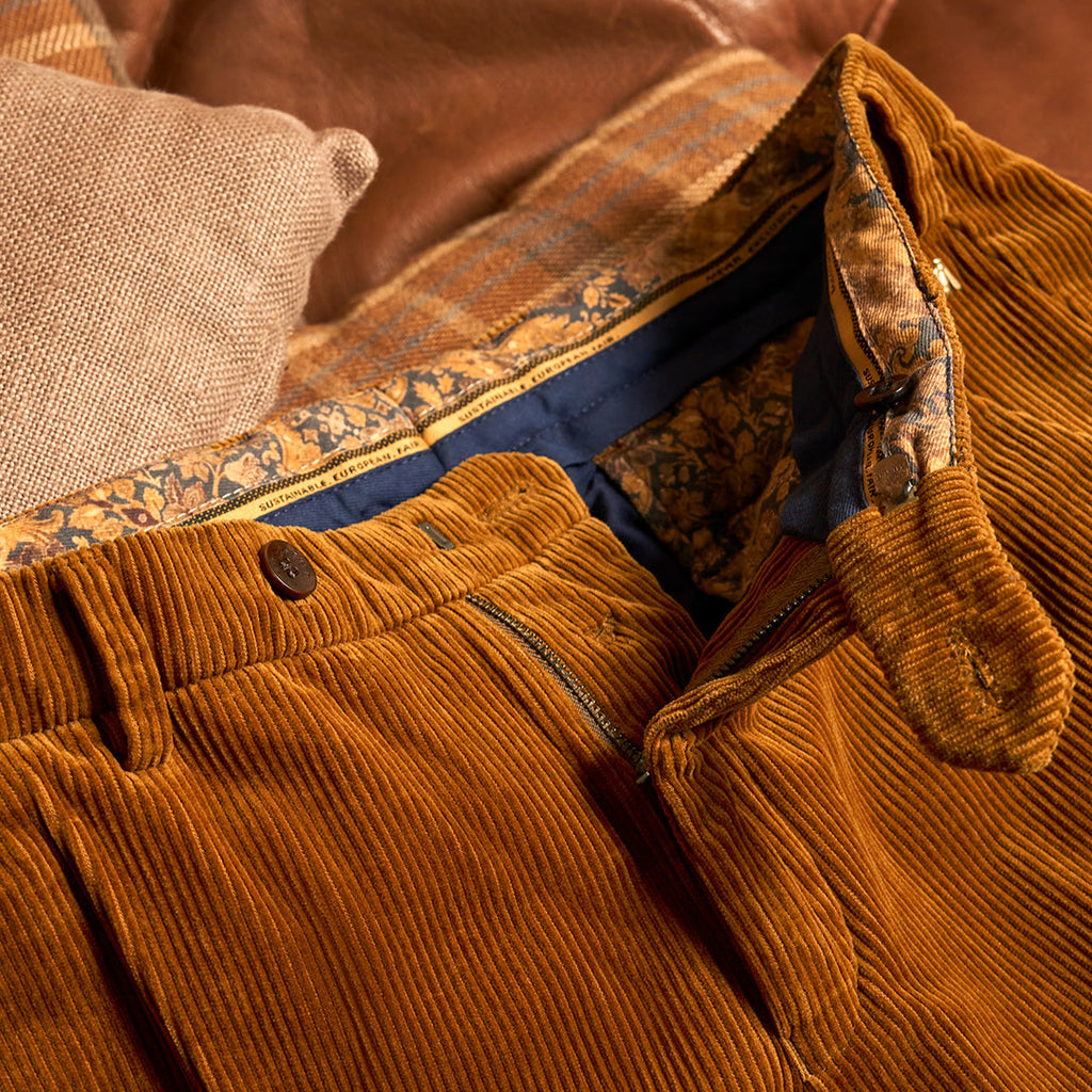 Et par bukser er lavet af omkring tres stykker stof, godt 380 meter garn og et par udsmykninger. Mange af de nødvendige produktionstrin udføres i hånden. Inspireret af skrædderkunsten, kalder vi dette for semi-sartorial kvalitet.